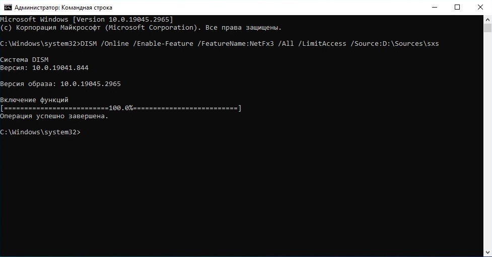 Dism /online /enable-feature /featurename:NetFx3 /All /Source:D:\sources\sxs /LimitAccess