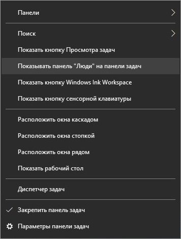 В контекстном меню панели задач Windows 10 есть пункт "Отображать панель люди на панели задач".